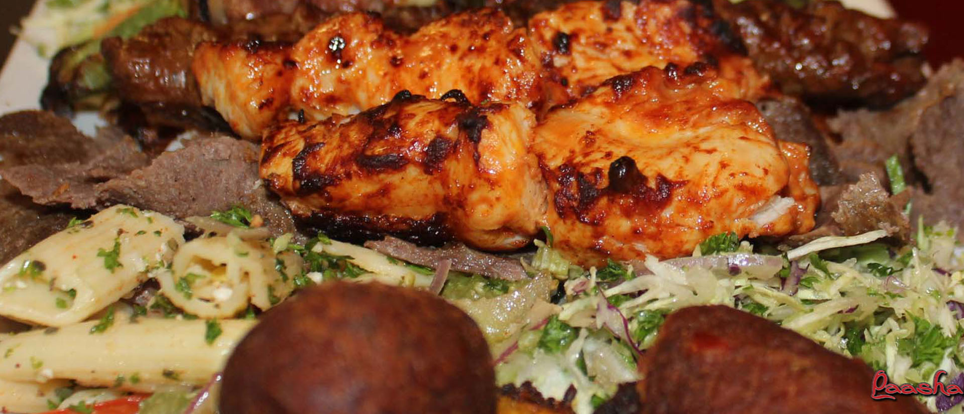 All 3 shish, both doner meats, falafel, pumpkin fritters, dolma and dips. Served on rice with salads. The full Paasha experience.